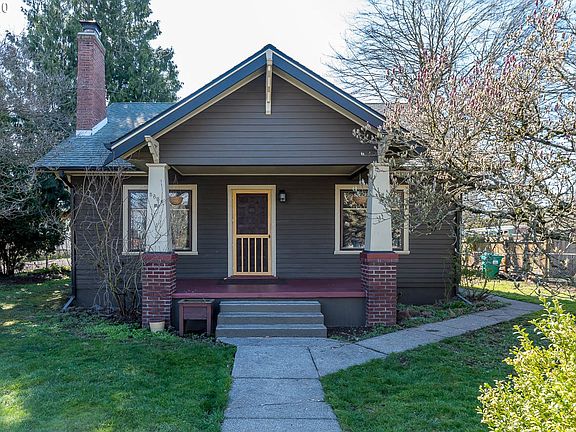 Vintage bungalow on an over-sized, fenced corner lot with detached garage/shop & room for your urban farm or ADU. Great curb appeal & layout. Spacious kitchen with pantry and french doors leading to covered deck. Living room with cozy wood burning fireplace and built in shelves. Basement bedroom suite (lacks egress) & additional bonus room. Freshly painted, newer roof and updated systems. Within walking distance of Woodstock's amenities. Sought after schools. Come make this one yours! [Home Energy Score = 1. HES Report at https://rpt.greenbuildingregistry.com/hes/OR10182761]