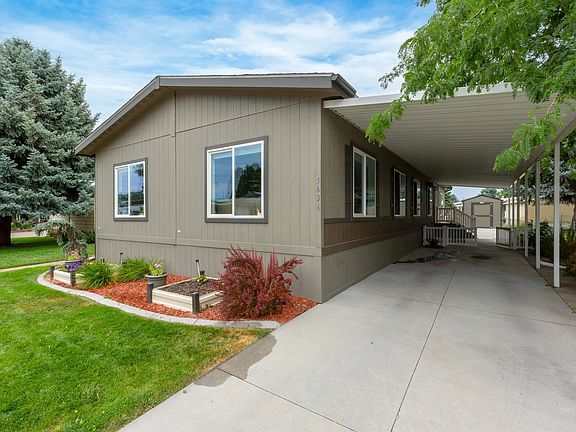 Better than new, spacious home in the gated 55+ community of Shenandoah Estates. Primely located near shopping, entertainment, medical & minutes from the Greenbelt makes this the perfect location for any lifestyle. Over $60K in upgrades, including, vinyl flooring, baseboards, GE SS appliances (fridge included), whole house water filtration system, reverse osmosis in kitchen, custom blinds, rain gutters w/ leaf screens, exterior landscaping, fencing, ramp to patio & Tuff shed on concrete slab. Open kitchen boasts island w/ seating, tons of storage, custom spice holder, & huge walk-in pantry. Spacious primary features walk-in closet, & large en-suite bath with walk-in shower w/ seat. Fully fenced yard, beautifully landscaped, 2x6 construction with snow roof. Vapor barrier installed under home & water pipes have been insulated. Community includes clubhouse w/ billiards/game room, pool, dog park and social club!