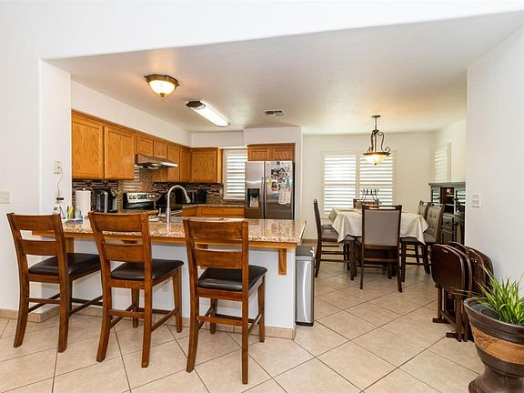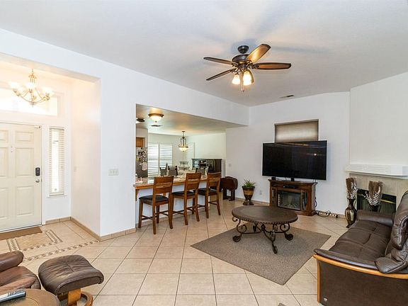 This beautifully well kept home is move in ready! A few of the perks include the large open living room adjoined to the kitchen which has plenty of cabinet space and extended countertops for barstool seating along with a dining area. You will also find large bedrooms with spacious closets, master bedroom with its own private bathroom with dual vanity sinks. Outside the extended concrete patio is partially covered and complemented by low maintenance landscaping and Solar panels which add to the overall energy efficiency of the home. Call today to schedule your private showing!