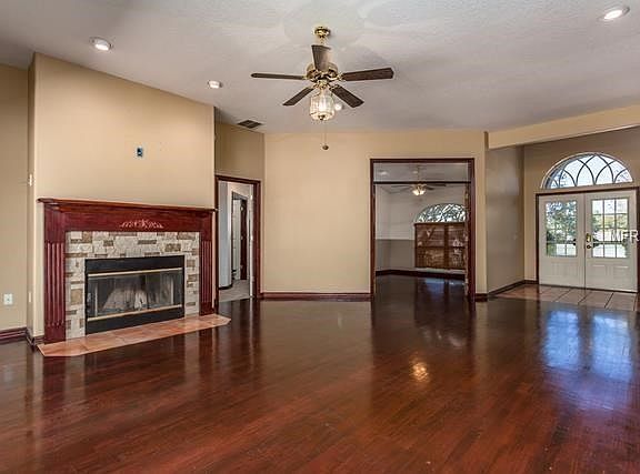 POOL HOME IN S. LAKELAND ON 1./2 ACRE!. A MUST SEE!. This beautiful open floor plan home boasts 5 bedrooms and 3 bathrooms. As you enter the solid wood floors great you and continue on throughout the living areas. Get cozy by the fireplace in the living room. Kitchen has been updated with attractive cabinets contrasting the dark counter top. Stainless steel appliances. Home has had fresh interior paint and carpet in the bedrooms. Large master bedroom that has access directly to the pool, large closets and large en-suite bathroom. The other 4 bedrooms are on the other side of the home with 2 bathrooms. Home comes complete with office/Den with antique doors. Relax by the screened in pool, not overlooked by the neighbors. Nice over sized corner lot. Long driveway with a 2 car garage on the side of the house. Property boast mature fruit trees including avocado, mango, lemon and pineapple.