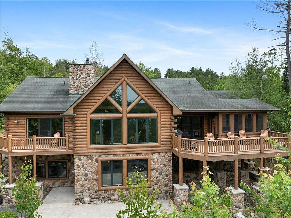 Voyageurs Retreat log home on Wynne lake with panoramic views of Giants Ridge in Biwabik Minnesota. This custom luxury home was built in 2007 with no expense spared. Features include five bedrooms, three baths, vaulted log beamed ceilings, main floor primary suite, spacious kitchen w/ stainless appliances, pantry, three season porch, large deck, beautiful sunsets, full finished lower level walk/out with wet bar and sauna, attached garage with in-floor heat, extensive landscaping, perfect sand beach and all in the heart of Northern Minnesota's premier recreation area with excellent skiing, championship golf, hiking trails and so much more!