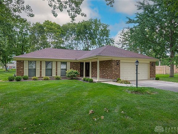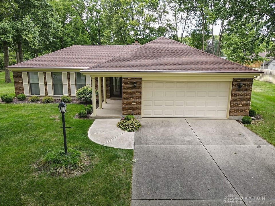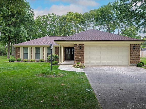 Welcome to this charming custom built brick ranch on a private wooded ¾ acre lot. .78 acres. Single level living nestled in the trees! 3 Bdrms, 2 full baths, a beautiful sunroom, 2 car attached garage. 1,958 Sq. Ft. This home features a large living room, formal dining room, and a family room with a cozy fireplace. There is a generously sized kitchen, a primary suite with attached full bath and 2 additional bdrms that share a hall bath. The kitchen has an eat-in area, granite counter tops, double sink, water purifier system, large pantry, and all appliances are included. The utility room includes the washer and dryer and handy utility sink. Walk out to the beautiful 3 season sunroom and enjoy the views of the private lot. Enjoy the large patio with room to relax, entertain, barbeque and enjoy the view of the private tree lined lot. It’s truly an outdoor paradise. The attached 2 car garage has pull-down stairs with attic storage. This one owner home was custom built by Zengel and has been lovingly cared for. Updates include Roof 2022, Gas furnace 2019, AC outside unit 2013, Water heater 2023, RO Water purifier 2016, Gas fireplace 2021, Garage door opener 2019, Gutters 2014. Fabulous location, quiet friendly neighborhood. Steps away from Four Seasons Swim & Tennis. Close to Costco, shopping, dining, I-675, WPAFB and parks. Immediate occupancy. No HOA. Enjoy the peace and privacy of this exceptional property.