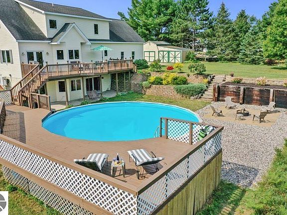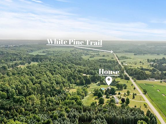 This Stunning Custom 4-bedroom, 3-bathroom home on 10 acres of land offers an array of amenities for a diverse and exciting lifestyle with well-appointed living spaces that promise comfort and elegance. The presence of a pool on the property adds a refreshing element, particularly inviting during hot summer days. The large custom kitchen with granite countertops and an oversized island is not only functional but also visually appealing, overlooking both the picturesque natural surroundings and the enticing pool. The full walkout basement provides extra living space and potential for customization. A large deck serves as an excellent spot to take in the serene views and enjoy outdoor gatherings. The property's 10 acres of land are rich in recreational potential, offering a diverse range of activities for all seasons. The 3 custom blinds and tree stands indicate the property's suitability for hunting enthusiasts. An 11 Point Trophy Buck hangs proud on the wall downstairs along with many more large bucks that are produced each year on the property. From snowmobiling and cross-country skiing in the winter to sledding, driving range practice, and four-wheeling, the property caters to a variety of outdoor interests. The availability of swimming in the pool during the warmer months and blackberry picking adds delightful options for relaxation and natural bounty. The tranquil and peaceful setting of the property creates a serene escape from the demands of daily life, promoting relaxation and reconnection with nature. The fire pit provides an ideal spot for winding down with friends, sharing stories, and enjoying the crackling warmth of a fire. This property appears to be a haven for those seeking both adventure and solace. The blend of indoor luxury and outdoor excitement, set against a backdrop of natural beauty, offers a complete and fulfilling lifestyle. This property provides the perfect canvas for creating lasting memories and enjoying the changing seasons.