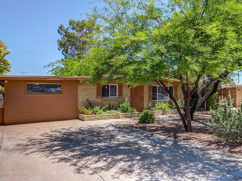 Fantastic newly renovated home in the Mitman community of Central Tucson! Pristine interior features custom two tone paint, gorgeous wood and tile flooring and picture windows that allow for tons of natural light. Eat in kitchen boasts black appliances, custom cabinetry and granite counters. Spacious bedrooms have wood flooring. Generous backyard is complete with mature trees, separate storage shed and carport entry! This home is move in ready and waiting for you! See it today!