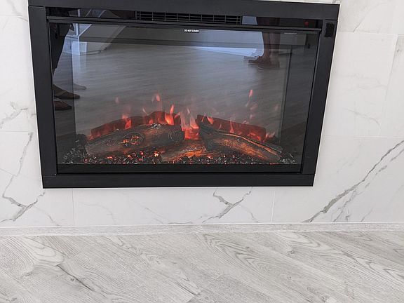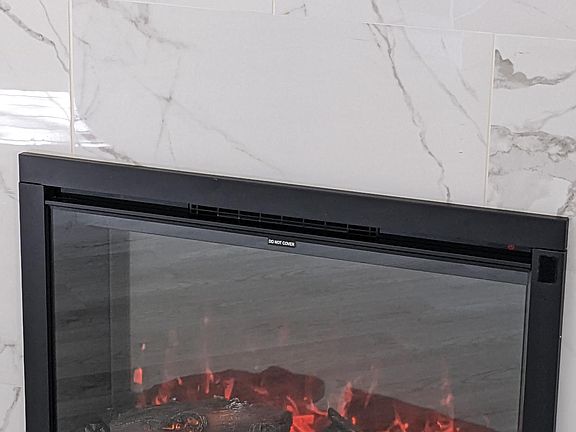 Covered parking spaceUpstairs linen closetCarrara marble faced fireplacePrivate fenced patioCentral heat and airMirrored closetOpen shelving