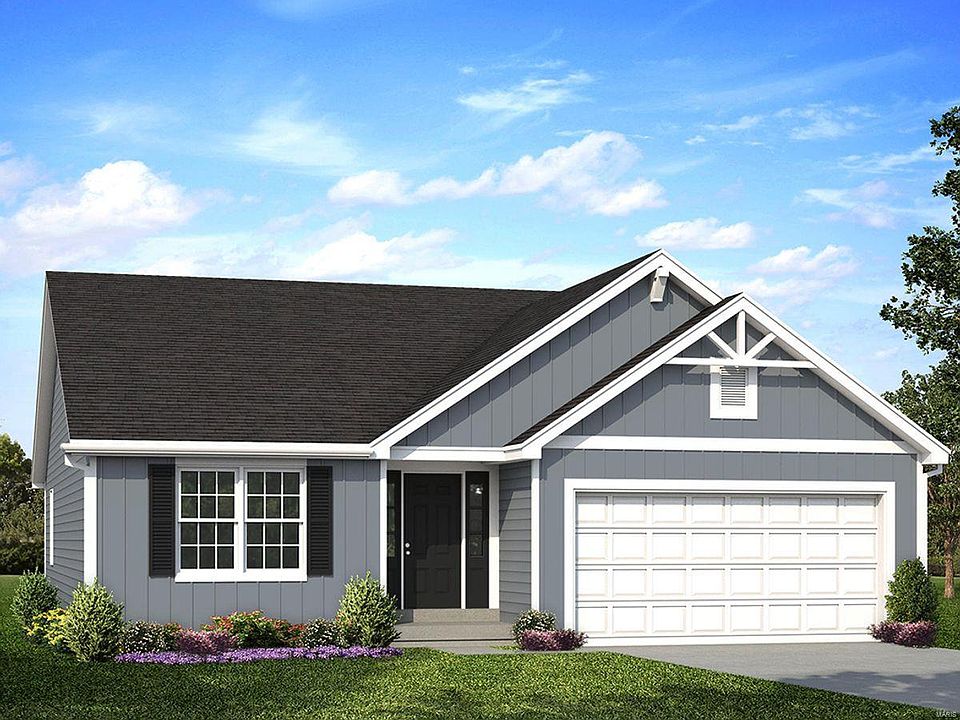 This McBride Homes new construction Aspen II Ranch model features 3 bedrooms 2 baths and will be ready in late spring! Walkout homesite! Great open floorplan with vaulted ceilings, 6ft windows, and beautiful wood laminate flooring throughout main living areas. Large kitchen island with flush countertop for breakfast bar, quartz countertops, painted white 42in tall cabinets, stainless steel GE appliances, and large walk in pantry. Covered future back deck area with sliding glass doors off dining area. Master suite large window, dual closets including one large walk in closet, and private master bath features an adult height double sink vanity and walk-in shower. Ceiling fan in family room and pre wires for ceiling fans in bedrooms and future deck area. Main floor laundry, ¾ bath rough in at lower level, white six panel doors, and more! Community features 263 homesites off Bear Creek Rd, east of Gravois Rd and Carol Park Rd. McBride Homes’ 10 year builders warranty! Similar Photos Shown