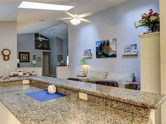 Move-in ready, open floorplan, 3-bed, 2-bath, pool home with no rear neighbors and a view of a conservation area. Spacious Master bedroom with walk-in closet and master bath and slider to pool area. The eat-in kitchen has ample storage and counter space with new stone countertops. Vaulted ceilings in Great Room, Dining Room, and Living Room and French doors to the lanai give that feeling of openness. Screened lanai make for great summer days around the in-ground saltwater pool. New roof in 2014 and new HVAC in 2015. Conveniently located in Cattlemans Crossing with quick access to SR54, the Suncoast Pkwy and Longleaf. Starkey Park is just minutes away with miles of walking and hiking trails for outdoor activities. Lovely landscaping with fruit trees and inground sprinkler system.