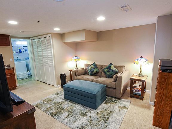 You Found It - Move in ready 2 BD 2BA Condo backing to green space w/freshly stained deck, spacious garage. The entire lower level is fully finished including a FULL BATH, REC ROOM and FULLY FINISHED LAUNDRY ROOM w/Pocket Door. (Washer/Dryer Included) New water heater 2019, New HVAC 2015. Great Room features custom Crown Moldings and New Carpet, as well as a fabulous corner gas fireplace. Updated Kitchen w/New Appliances 2021, ceramic backsplash, custom counter tops, all new light fixtures and new ceiling fans throughout. New LVT floor in upstairs bath on 6/25/22.