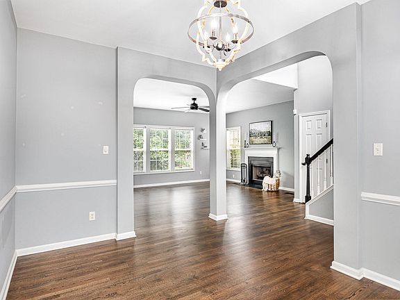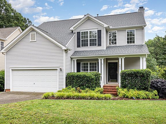 This charming 4 bed/2.5 bath home offers convenience, space & style together on a prime corner lot in SW Raleigh's coveted Bryarton subdivision. The first floor is perfect for both everyday living & entertaining w/ a welcoming 2-story foyer, site-finished hardwoods, a gas fireplace, designer lighting, a chef's kitchen w/ granite countertops, tile backsplash, LVP flooring, a stainless gas range & professionally painted 42'' cabinets + a spacious breakfast nook w/ direct access to the back deck overlooking the fully fenced backyard. Upstairs the second floor is just as inviting w/ smooth ceilings, decorative millwork, spacious bedrooms, an updated hall bath, a large walk-in storage room & a large primary suite w/ vaulted ceiling, LVP flooring, a spacious walk-in closet & a stunning ensuite bathroom featuring dual sinks, a dedicated linen closet & a walk-in shower w/ custom tile & built-ins. Not to be overlooked are the community pool & playground along with the home's A++ location on the Raleigh/Cary line -- Just minutes to Crossroads, I40/440, Downtown Cary Park, NC State, Meredith, Downtown Raleigh & beyond!