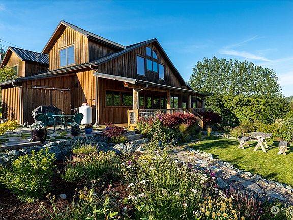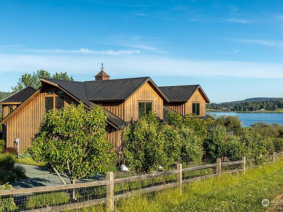 RARE EQUESTRIAN & ACREAGE ESTATE ON SOUGHT-AFTER LAKE CAMPBELL! The BEST of country living on stunning Fidalgo Island - all 10 mins from town! Home sits on 6.67 acres & has 365° views w/SPECTACULAR southern exposure, 280+ ft lakefront, 2 electric fully fenced pastures, 50' horse arena w/2-stall loafing shed & separate access road! Terraced grounds have garden space, orchard, enclosed chicken coop, vegetable beds, flagstone patio. Modern 3 bed, 3 bath home converted from 1960's barn has large 2-car garage, soaring 30+' ceilings w/exposed beams, stunning industrial staircase, concrete floors. Chefs kitchen w/solid maple cabinets, leathered granite counters, gas cooktop, W/I pantry. Front-row Mt. Erie views in primary bedroom w/spa-like bath!