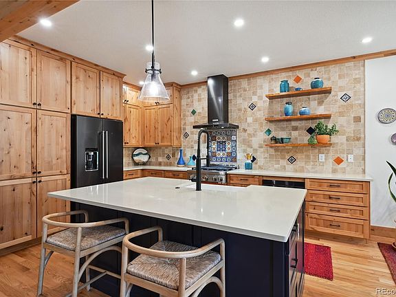 Welcome to this stunning custom home in a desirable 55+ community, nestled near North Table Mountain in Golden, Colorado. This thoughtfully designed residence has undergone extensive renovations, showcasing a spacious open kitchen that seamlessly flows into the living area. The kitchen features exquisite custom Alder wood cabinets paired with top-of-the-line KitchenAid appliances, ensuring both style and functionality for the discerning chef.