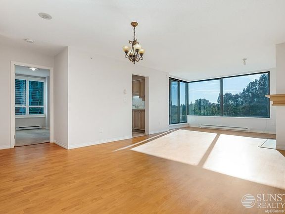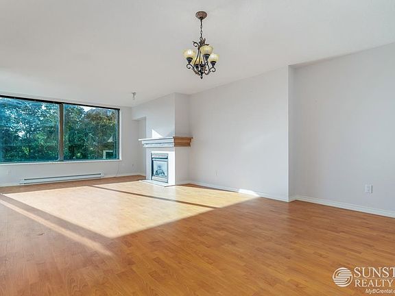 This 1073sf 2 beds 2 baths unit has an efficient spacious layout and open expansive views of Hampton Place with plenty of evergreens all around. The proper foyer has ceramic tiled floors. The huge rectangular living-dining room comes with laminate floors throughout, gas fireplace in the living room, a classy four-bulbs chandelier in the dining area, and access to the view balcony. The kitchen comes with two rows of wooden cabinets, a brand new stainless steel fridge, fully ceramic-tiled floors, a breakfast nook with a ceiling fan, and also access to the view balcony. The primary bedroom has a ceiling light fixture, two closets with mirrored doors and a 4 pcs ensuite. Rent includes 2 parking stalls and 1 storage locker. No more than two unrelated occupants are allowed for insurance reasons