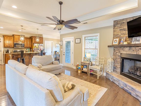 - Features: Ceiling Fan(s), Crown Molding, Fireplace, Wood Floor
