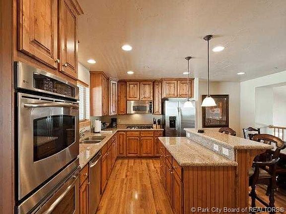 Incredible value for this townhome located at the top of Bear Hollow Village bordering the 300 plus acres of open space and views of the Olympic sports park. This on has all the upgrades, gourmet kitchen, balcony off master, air conditioning, hot tub and furniture negotiable - - turnkey and ready for you to enjoy now. Floor plan includes 4 bedrooms on second floor PLUS the den with 3/4 bath on lower level. Excellent rental income. Bear Hollow also includes the lowest HOA's in Park City, is PUD, great for financing --- and has a wonderful family pool/clubhouse and fitness area. On the Bus route, and you can walk to the new 5K XC track or take the bike path to Kimball Jct.