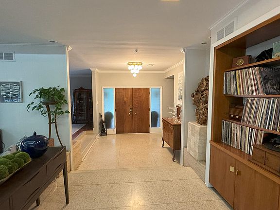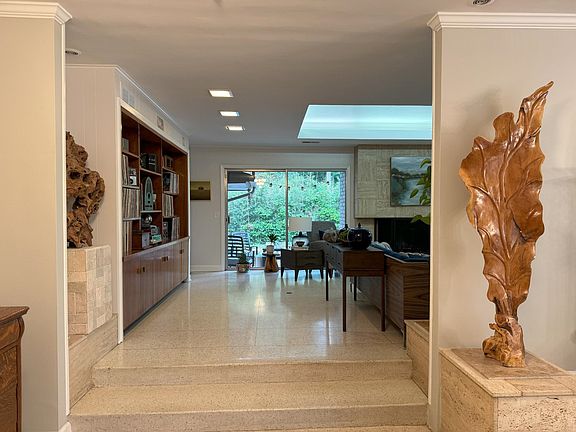 Beautiful Mid Century Modern home with tons of light and large open living spaces. This is a one story, 5 bedroom, 3.5 bath with bonus and office, featuring all solid surface floors and built in cabinetry throughout. Multiple sliding glass doors open up to a huge patio and pool designed for large gatherings. Some of the original Mid Century features include terrazzo flooring, Geneva cabinets and a beautiful, sleek fireplace.
