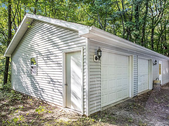 Delton Contemporary in the Woods! This unique home is nestled in 5 wooded acres with private treetop wooded views. ''Treehouse'' living at its best with vaulted wood-beamed ceilings, lots of natural light, 2 fireplaces, open kitchen w/snack bar, 3 large bedrooms , 2 baths walk-out level with lots of potential. Potential for l family room or additional bedroom. Huge 2 car garage with attached woodwork shop. New flooring throughout. Only minutes from several lakes: Guernsey, Cloverdale, Long, Loomis & no. 21 Lake. Call today for a private showing to see how magical this home and its private setting are!