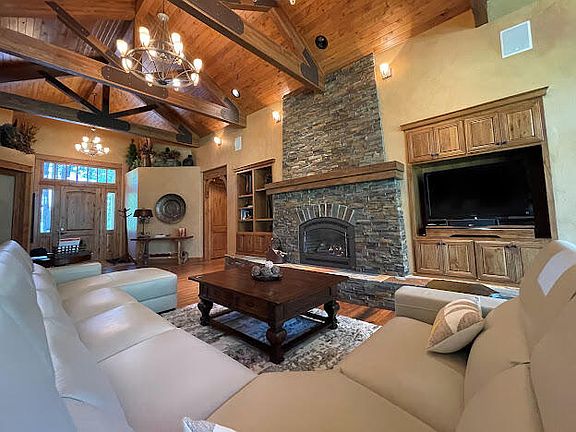 This home in Caldera Springs offers year round enjoyment. Cuddle up to a warm fire while the snow is falling. Walk or snow shoe around the trails and enjoy the pool and lakes in the summer. If you enjoy a good game room this one is definitely a must see. The game room has a small kitchen area, pool table, fireplace and full bathroom. All the bedrooms are spacious and the office has been converted to a bunk room . The 3 Bedrooms are all full masters, but the main master is amazing and you won't even want to come out of it. The outside covered patio is relaxing and has a gas firepit, Hot tub and wildlife. This home comes turn key and has bookings on the books.