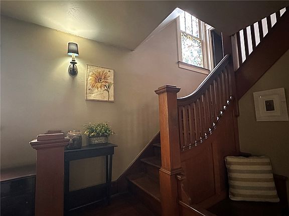 BEAUTIFUL 2 STORY HOME WITH ORIGINAL HARDWOOD FLOORS AND WOODWORK THROUGHOUT. HIGH CEILINGS. ENCLOSED SUNPORCH IN FRONT OF HOME (COULD BE DEN). HUGE LIVING ROOM AND DINING ROOM WITH STAIN GLASS WINDOWS. GAS FIREPLACE IN LIVING ROOM. CUTE AND COZY EQUIPPED KITCHEN 2 WAY STAIRCASE. LAUNDRY SHUTE. 4 NICE SIZE BEDROOMS ON 2ND LEVEL. FULL BASEMENT HAS PITTSBURGH POTTY/LOADS OF STORAGE ROOM OR FUTURE GAMEROOM. REAR COVERED PORCH. PLENTY OF OFF-STREET PARKING (FROM ARDMORE OR ALLEY) + 2 CAR DETACHED GARAGE ACCESSIBLE FROM BOTH SIDES. CONVENIENT TO SHOPPING, PGH, DINING ETC.