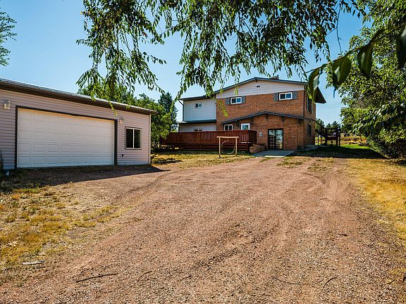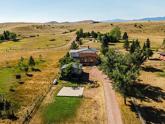 This cozy country home, on an acre, is a private retreat within 10 minutes of downtown Sheridan. The tree-lined driveway makes for a beautiful approach to this 4 bedroom two-story home, with brick accents. A large front deck welcomes you and provides for a wonderful place to barbeque or simply enjoy the Wyoming evenings. A few of the highlights inside include a beautifully updated kitchen(with induction stove!), sunken living room/den, a wood stove, sunroom, multiple living spaces, and a private deck off the second story. For vehicles, toys, projects, etc. there is a 24x28 garage/shop along with a large concrete parking pad. All this with SAWS water and no covenants!