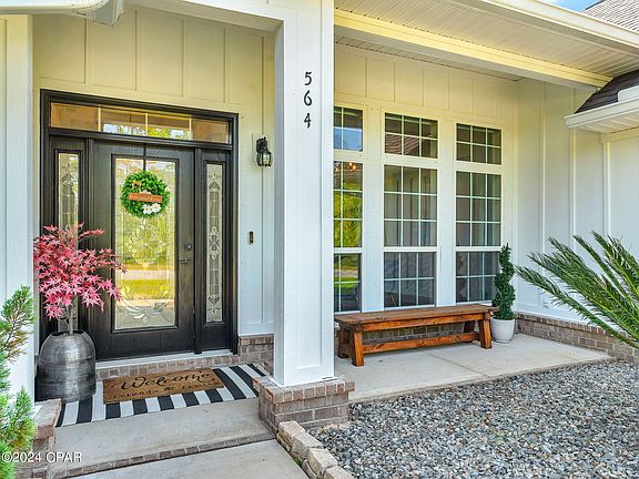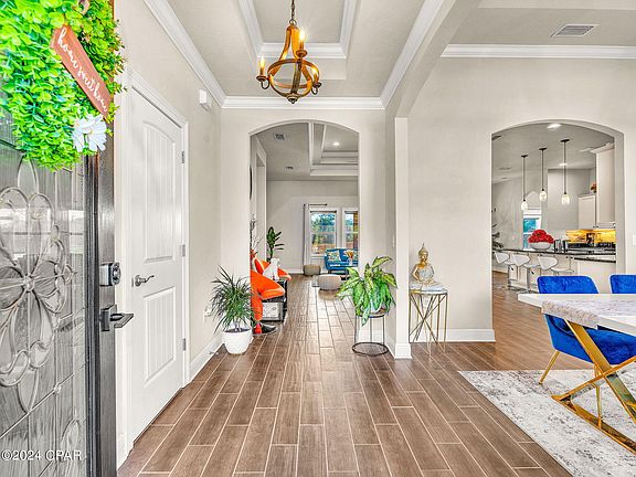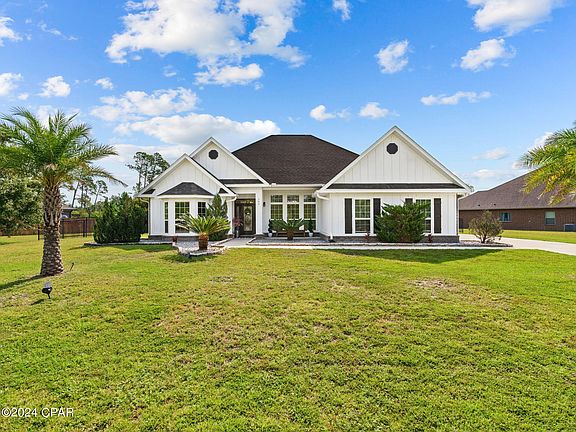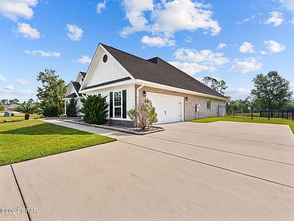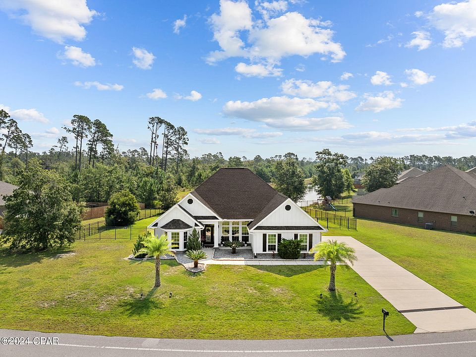 CURRENTLY UNDER CONTRACT, SELLER WILL CONSIDER BACKUP OFFERS. Welcome to this stunning home, where elegance meets modern upgrades, including a brand-new roof and a spacious lot! As you enter, the exquisite tile plank floors and open floor plan immediately catch your eye. A dedicated office with French doors offers the perfect space for productivity. Your family will love the formal dining room and the breathtaking kitchen, featuring a stylish backsplash, expansive island, stainless steel appliances, granite countertops, pantry, and a cozy eat-in dining area. The split-bedroom layout ensures privacy, with a generously sized master suite that has a luxurious bathroom, complete with a large tiled shower, separate garden tub, massive walk-in closet, and double sinks. Two additional spacious bedrooms, a guest bathroom, and a convenient laundry room provide comfort for the entire family. Step outside to your covered, screened-in patio and enjoy serene views of the pond and the natural beauty surrounding you. No houses behind you! The expansive, fully fenced yard offers endless possibilities for outdoor fun and there's even plenty of room for a pool. The community amenities are exceptional, including a resort-style pool and hot tub, two gas grills, a playground, and a seating area. With easy access to Tyndall AFB (just 22 miles away), Lynn Haven (15 minutes), and the airport (20 minutes), this home truly offers the best of both luxury and convenience.