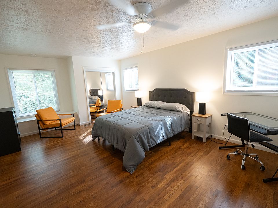 Large Master Bedroom w Private Bath. All utilities. Modern newly renovated 4 bedroom/3 bath home, all new furnishings including awesome artwork and a work station in every room. Private limestone bath with large tile walk-in shower. New queen bed w 100% cotton sheets will let you feel right at home. Kitchen has everything for your use, even an air fryer. The whole house, including a large deck is for your use as well. Free wifi for residents. Spread out make yourself at home! It's spacious, private and modern, no clutter or granny decor. Max. 3 other housemates.. and accommodation for off-street parking as well. Free use of washer and dryer on premises. All rooms have electronic locks with your own private code. This is a quiet safe house. Fire extinguishers, smoke alarms and outside camera system have easy functionality. Looking for quiet singular professional. No parties/loudness/overnights. Please note: some housemates are night workers/ day sleepers. We ask for consideration for all. Need something just ask. We are here for you. **Absolutely no smoking or pets. Minimum monthly rental. Refundable deposit. $100 cleaning fee. Application fee. Welcome! NO SMOKING ALLOWED. No exceptions. NO PETS. No exceptions. Cleaning fee $100 Fully refundable deposit. All utilities furnished. Consideration for all residents a must. No loudness please. Tenant agrees to keep premises clean. No trash inside and out including private room and common areas. Tenant agrees to cleanup after him/herself. Tenant agrees to no visitors and no overnight guests. Lease duration is one month. Rent due on first of month. No exceptions. Payment to owner/management by Zelle, Apple Pay or direct deposit.