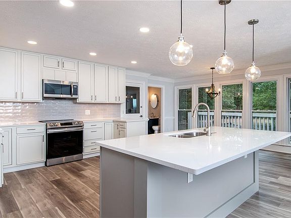 - Kitchen Features: Kitchen Island, Solid Surface Counters, Cabinets White