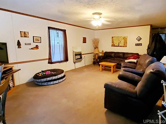 Nicely maintained home sitting on 7 beautiful acres! This home features 2 bedrooms, each with large closet spaces; 2 full bathrooms; a large, open kitchen; and a cozy living room with supplemental space heat. There are plenty of apple trees around the property to bring in some wild life while enjoying your private slice of the U.P. This is true country living with the benefits of easy, year-round access, propane forced heat, drilled well & septic, and access to cable and internet if needed. While the house is nicely tucked away and quiet, the land does have highway frontage where a billboard brings in a little cash each year. So whether you are looking for a place to call home, or a place to get-away, this could be the one!