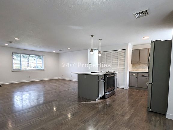 This beautiful 3BD/1BA single level home boasts beautiful wood floors and lots of natural light throughout the open concept living and dining area, creating an ideal space to entertain. The kitchen is a dream with stainless steel appliances, and a central island with a breakfast bar. Three spacious bedrooms offer cozy retreats, perfect for relaxation and restful nights, and the bathroom features all the modern essentials you could need.