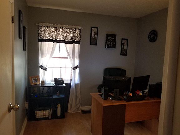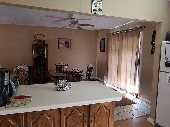 Large fenced backyard, large outside storage building, all new light fixtures, no carpet all tile & wood, refrigerator supplied with home. All windows have blinds except for the two French doors. Upstairs French doors open to a deck and the downstairs French door opens to concrete patio.