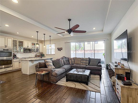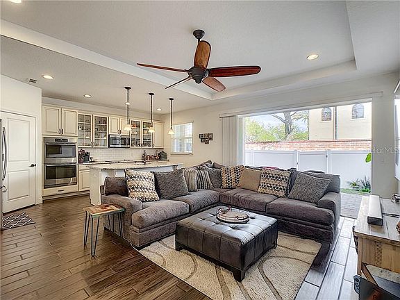Enjoy a maintenance free lifestyle with this exquisite 2 story townhome situated in the desirable gated community, Reserve at Lake Wildmere. As you walk through the front door you'll be greeted by an abundance of natural light, trey ceilings, neutral wall tones, durable wood-look tile and perfection from floor to ceiling. This open floor plan features 1,969 square feet, 3 bedrooms (all upstairs), including a very large owner's suite (20x12), 2.5 bathrooms and a gorgeous kitchen overlooking the living and dining rooms. Living room features trey ceilings, quadruple disappearing sliding doors leading out to the extended paver patio (24x8) and fenced backyard (vinyl). The stunning gourmet kitchen boasts 42 inch custom cabinets with glass doors and decorative molding, modern hardware, GE stainless appliances including double oven and glass cooktop, gorgeous granite counter tops, over-sized island with seating and pendant lighting, stylish tile backsplash, walk-in pantry, and recessed lighting brighten the space. Stairs lead to the second floor loft perfect for an office or craft space. Spacious owner's retreat offers walk-in closet (12x6), lush carpeting, plenty of natural light with a charming barn door leading to the luxurious bathroom (15x12) with walk around shower and his and her showerheads, bench seating, tile from floor to ceiling, multiple windows and elegant double vanities. Secondary bedrooms lead out to the expansive shared balcony (19x5)! Reserve at Lake Wildmere is a gated community in the heart of Longwood featuring a resort style pool and community dock overlooking Lake Wildmere. HOA includes exterior lawncare and maintenance so you can live worry free. Centrally located just minutes from major highways, restaurants, shopping, and entertainment. Come see for yourself.