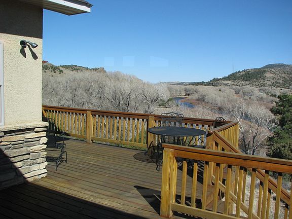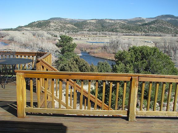 SOUTH FORK, COLORADO, CUSTOM HOMES FOR SALE. Beautiful home with 2,280 s.f. on the main floor and 1,356 s.f. downstairs with a walk-out basement. The master bedroom on the main floor is very spacious with lots of light, luxury bath with glass and tile shower and Jacuzzi tub. walk-in closet. Living Room is large enough for a great seating area or two smaller seating areas. The views of the Rio Grande and the San Juan Mountains--snow peaked in the winter, can be enjoyed through windows from floor to peak of the ceiling. Gas log fireplace, warm Hickory hardwood floors with the in floor radiant heat create ambiance for cold winter evenings. Sound is wired throughout the home and on the large deck. Dining room is a windowed area between living room/kitchen. Kitchen is made for everyone who is a cook at heart. Hickory cabinets (drawers close automatically) are complimented by Granite counter tops. Large pantry has both shelving and cabinets. Heartland Range provides the best in cooking--electric, gas, and convection. Dishes, pots & pans, linens, furniture, beds all stay with the house. Walkout basement has 2 bedrooms and 2 baths on each side. Nice sitting area in the center leads to outdoor patio area. Provides wonderful privacy for your guests and family. Lighting is superb throughout the home. Attached garage has 720 s.f. Water and sewer lift station provided by South Fork Water and Sanitation. Propane tank is 500 gallon and is buried under ground. This home is a real jewel from quality, location, and breathtaking views!