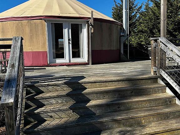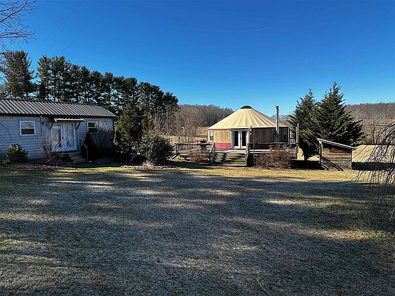 Beautiful 7.12-ac property with tiny home, 30-ft yurt, pastureland, wooded stream, near downtown Floyd, VA. Yurt is ~700 sq ft with large deck. Full modern kitchen: gas range, stainless refrigerator, dishwasher. Mini-split and wood stove. Full bath. Tiny home is ~320-sq ft plus loft. Full kitchen and bath with on-demand hot water. New paint, lighting, and Lunos HRV. Outbuilding with washer-dryer.