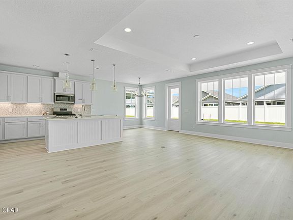 Discover your dream home! This exquisite 3-bedroom, 2-bathroom Trigger plan in the sought-after Breakfast Point East neighborhood of Panama City Beach is ready to enchant you. Step into your open floor plan that creates a warm, inviting atmosphere with durable luxury vinyl plank throughout (tile flooring in bathrooms), ideal for entertaining. The kitchen is a culinary enthusiast's dream, featuring GE stainless steel appliances, abundant storage, under cabinet lighting, and a large island with quartz countertops throughout. Retreat to your owner's suite, overlooking the peaceful backyard. This sanctuary includes an en-suite bathroom with a walk-in shower and luxurious features, plus a spacious walk-in closet. The two additional bedrooms at the front of the home share a modern full bathroom. Stepping into your backyard haven, you are invited to relax and play. Whether it's fetch with your dog, kids running around, or a backyard barbecue with friends, there's ample room for all your outdoor activities. The front porch is perfect for enjoying your morning coffee or reading a book. All new Breakfast Point East homes built by Fischer Homes are designed to withstand up to 160MPH winds with structural steel framing. The Breakfast Point East community is an idyllic neighborhood located in the heart of Panama City Beach, in close proximity to excellent schools, shopping, dining, recreation activities, and only 3 miles from the stunning white sand beaches of the Gulf Coast! *Photos depict a different home with the same floor plan. Finishes and upgrades may vary.