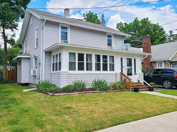 First glance you will notice new sidewalks leading to so much curb appeal on this vinyl sided two story. Front porch is perfect for relaxing and leads inside to beautiful original woodwork in the living room & french doors leading to a formal dining room and spacious kitchen. First floor laundry room and half bath for convenience, 3 sizeable upstairs bedrooms but there is an additional office. The current sellers enjoy the pellet stove in the livingroom to take the chill off any colder night. The back yard is full of tranquility with the beautiful back deck over looking a fenced in yard.