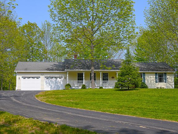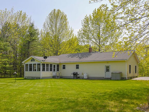 This sweet Ranch style home will melt your heart with its expansive farmer's porch overlooking a beautiful front yard that offers nice seasonal views of Pleasant Mountain. You can also enjoy the huge, private backyard from the 3-season sunroom where you can watch the horses run in the field behind the property. A well-manicured yard displays pretty gardens with mature trees and plantings and is surrounded by stunning stone walls. This convenient layout offers direct entry from the attached 2 car garage as well as the front porch or sunroom. When you enter the home a welcoming floor plan invites you into a large oak kitchen with a center island, tons of cabinets and a dining area set in front of the pretty French doors. An oversized doorway to the large living room leads you to enjoy the views from the 3 large front windows or warm up by the fire of the cozy propane stove. This home has 3 cheerful bedrooms, two full baths and a completely dry, full basement for storage or future expansion. Other amenities include a storage shed, access to basement through garage or interior, a generator and an ADT security system. This is an exceptional home in an outstanding location - A true must see!