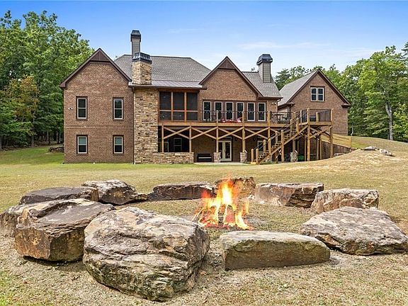 Welcome to 564 Mystic Trail Lane, a stunning custom-built estate nestled within the prestigious gated community of The Preserve at Sharp Mountain. Perfectly positioned at the gateway to the North Georgia Mountains, this private 6.12-acre retreat offers a serene escape just an hour north of Atlanta. Designed for those who appreciate craftsmanship, luxury, and nature, this home boasts estate-sized lots, breathtaking surroundings, and exclusive community amenities. Built with timeless brick and stone accents, this residence showcases superior attention to detail and quality. A level driveway welcomes you to a tranquil setting where a spacious backyard and oversized fire pit provide the perfect backdrop for outdoor enjoyment. Step inside to an open and inviting main-level design, where soaring ceilings, elegant architectural details, and seamless flow define the living spaces. The luxurious owner’s suite is a sanctuary of comfort, featuring a spa-like bath with double vanities, a spacious tiled shower, a soaking tub with picturesque views, and two oversized walk-in closets. The gourmet chef’s kitchen is a dream for culinary enthusiasts, equipped with Viking appliances, double ovens, a six-burner gas cooktop, a massive island, granite countertops, custom cabinetry, and a walk-in pantry. Adjacent to the kitchen, a cozy keeping room with a stone fireplace creates a warm and inviting atmosphere. The main level also includes a grand living room with a striking stone fireplace and built-in bookcases, a formal dining room ideal for special gatherings, a private office with a wood-burning fireplace, and an additional guest bedroom with a full bath. Designed for year-round enjoyment, the outdoor living spaces are nothing short of spectacular. A spacious back deck is perfect for dining and grilling, while the screened-in porch—featuring a tongue-and-groove ceiling, stone flooring, and a stone fireplace—offers a cozy retreat on cool evenings. The fully finished terrace level provides endless possibilities for entertainment and relaxation. It includes two guest bedrooms with a shared full bath, an expansive great room with a kitchenette, a dedicated home theater, a home gym, music room, walk-out patio access with an outdoor fireplace and additional unfinished storage space. For car enthusiasts and hobbyists, the property offers two full-size garages with a total of four bays. Above the detached garage, an unfinished space presents limitless potential—perfect for a workshop, art studio, or extra storage. Conveniently located near hiking trails, wineries, and the charming town of Jasper, this home offers the perfect blend of seclusion and accessibility. Just 60 miles from Atlanta International Airport, it’s an ideal retreat for those seeking both luxury and convenience. Discover the unparalleled elegance, comfort, and natural beauty of this extraordinary North Georgia estate—your dream home awaits at 564 Mystic Trail Lane.
