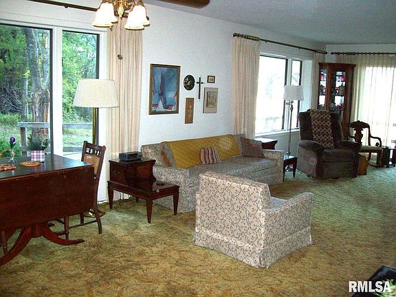 Country living with a fantastic view. This 1970's built home has 1548 square feet on the main level with kitchen /dining area. Great room with fireplace, large office, master bedroom, 1.5 baths and utility room. Lower level (614 finished square feet) has a large family room with fireplace, bedroom, full bath and tons of storage space. An oversized two car attached garage, all located on 4.5 acres +/- over looking the Scott County Illinois river bottoms. Property selling "As Is" inspections welcome.
