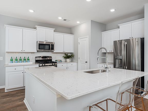 This home offers features a formal dining room and an open living space that flows out to the covered patio. There are three bedrooms on the first floor, including the owner's suite with a private full-sized bathroom. The second floor offers an additional bedroom and bonus room.