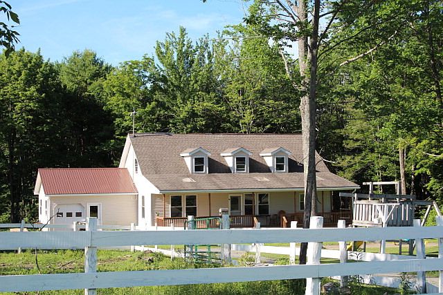 PRICE REDUCED!Peace & Serenity is what you will find in this 2006 Cape Cod home on 10 acres of both fields& woods.Large Kitchen w solid oak cabinets,spacious living rm,2 bedrms&full bth on 1st flr +3 add'l bdrms& a full bath on 2nd flr. A full basement w superior walls ready to be finished.Attached garage w new metal roof.30x60 pole barn,14x16 storage shed &fencing perfect for horses or a farm.Nice back yard & an inviting front porch. OGM rights convey & is currently in a Unit (8 acres). A gorgeous setting for sure! Seller will consider a lease for $1000/mth