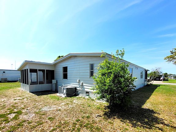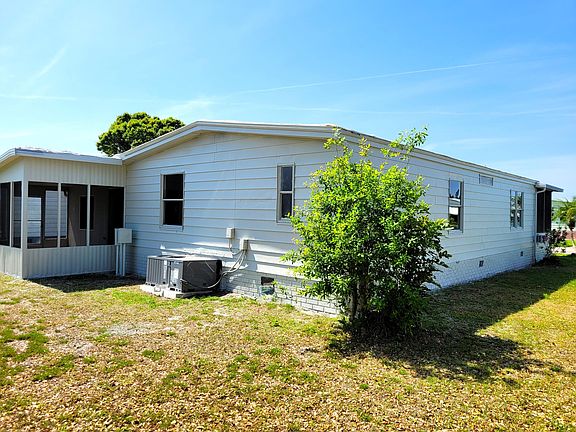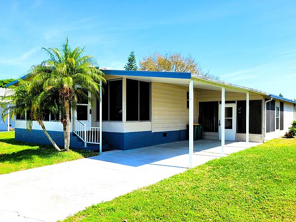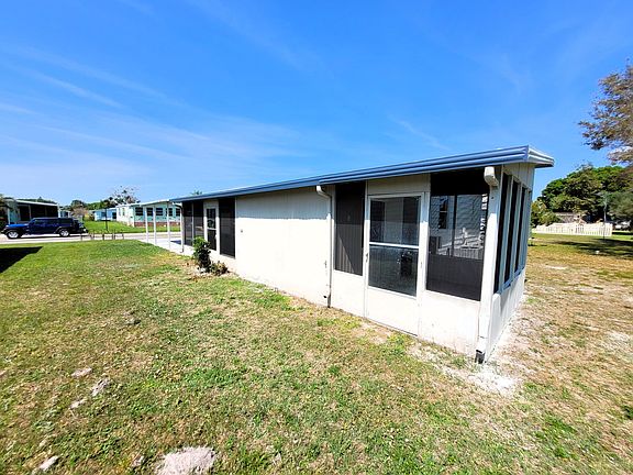 Don't miss this freshly updated home located in the well sought after Hollywood Estates and you own the land. No lot rent. This 2 bedroom, 2 full bath 1 car carport home offers an enclosed Florida room as well as a sperate screened patio area. There is a large community pool, shuffleboard, club house and RV storage. There is a very active community association offering activities for all members to participate. Close to all shopping, restaurants etc. There is ample storage and outdoor space.