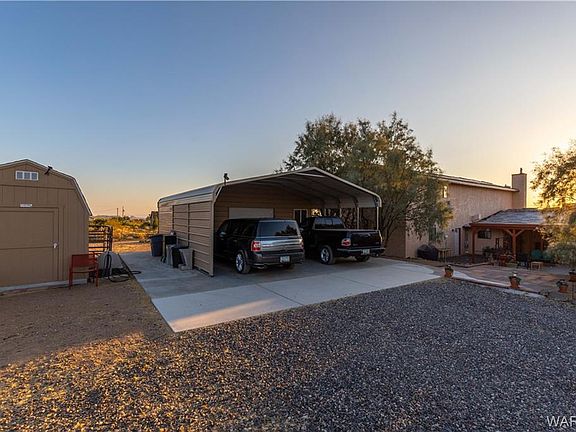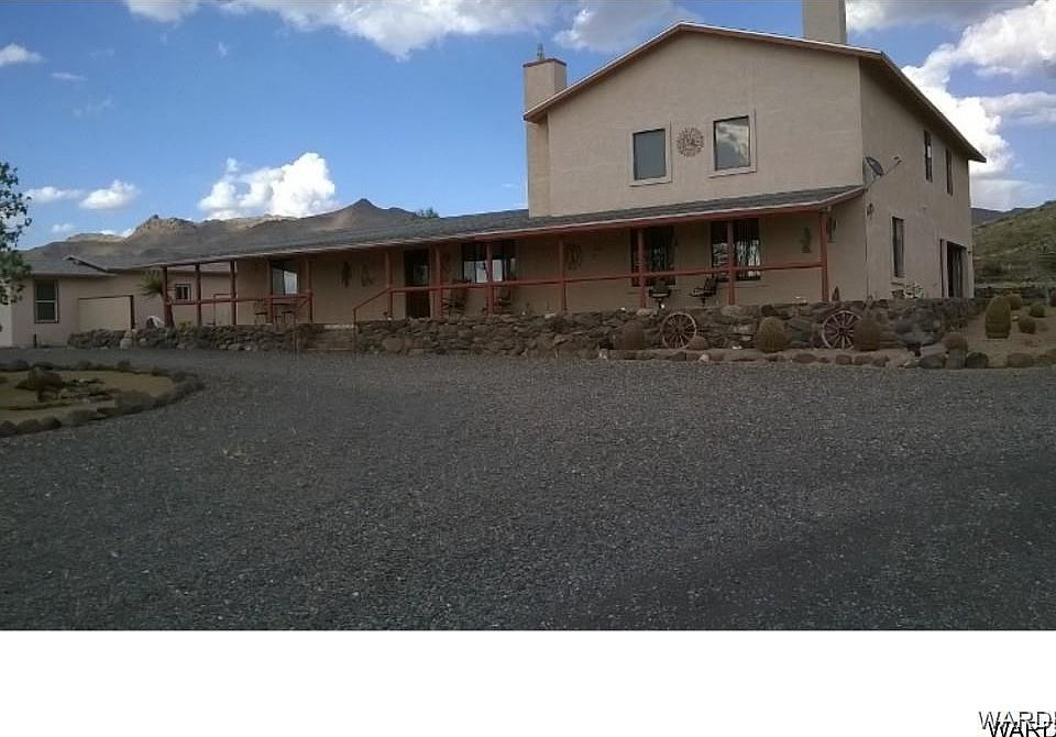 GORGEOUS RANCH STYLE 2 STORY HOME W/GORGEOUS VIEWS AND PERFECTLY SITUATED ON 4.8 ACRES* 3097 SQ FT LIVABLE PLUS AN OVERSIZED 2 CAR GARAGE W/WORKSHOP AREA* A SMALL LITTLE DECORATIVE TOWN IN YOUR OWN BACK YARD* SEPARATE WORKSHOP(with AC , insulated walls & 2 rooms & water available)**2 BARNS & 2 STORAGE SHEDS*METAL STORAGE BUILDING WITH 2 CAR COVERED CARPORT AND STORAGE*Large irrigated vegetable garden w/5 separate raised gardens area* If your family loves the outdoors and nature, then they will love this property*This property is a slice of Southwestern heaven located close to the mountains* Enjoy the country and still have all the amenities of water service and electric while still enjoying the serenity of the quiet desert life. This 4.8 acre horse property has direct access to ATV & equestrian trails* Property fenced and has automatic powered front gates. The front of the property is landscaped with decorative rock, mature trees, a huge fig tree*The home has central AC/Heat* Brand new roof installed last week**The front covered porch is the length of the home, measuring 10'X 66' to enjoy the priceless sunset views*Interior features Spanish tile, carpet and wood laminate throughout*upon entering the home you have a spacious living room w/large view window &wood burning/propane fireplace w/stone trim*Large family room with pot-shelves, built-in surround sound system, large view windows & a guests half bathroom*Country style kitchen w/plenty of real wood cabinets, electric stove, microwave, refrigerator, pantry and door w/built in shade blinds leading to the rear covered patio* 2 spacious guest bedrooms , 4th room/office(laminate flooring) and full guest bathroom all on the main floor* the upstairs has a HUGE KING-SIZE OWNERS SUITE with 2 large walk-in closets, dual sinks, dual medicine cabinets & large walk-in shower*Utility room/laundry room with utility sink & laundry shoot from the owners upstairs suite, washer, dryer included & shelving too* Huge covered rear patio the length of the home**attached oversized 2 car garage w/fan, insulated garage doors w/shop area* water heater is 2 years new* Rear yard features a large covered patio w/Spanish tile, 2 flower beds & an adorable water feature(owners personal creation) * Decorative stone steps, mature trees,* Chain link fenced*