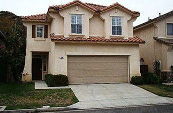 HUD Home. Price Reduced. Located in gated Wood Ranch community. Home features spacious living room with high cathedral ceiling, formal dining area, family room with fireplace, open kitchen with upgraded appliances, one bedroom downstairs, master suite with good size bathroom and walk-in closet perfect for large family. Located near cul-de-sac and has community pool and spa. House backs up against hill and has well manicured yard. This is one opportunity your buyers can not miss.