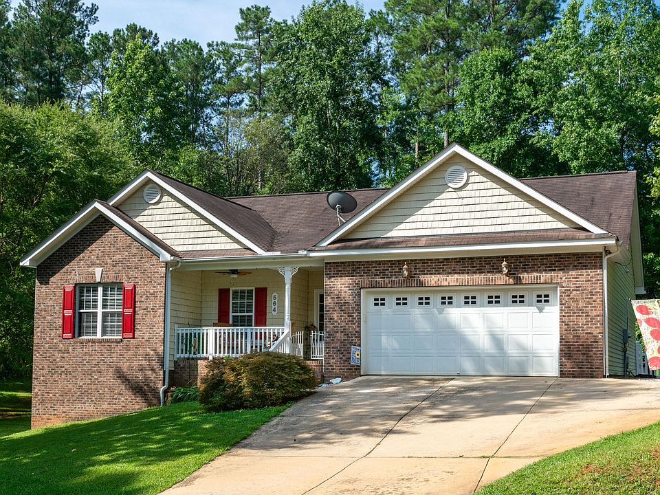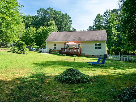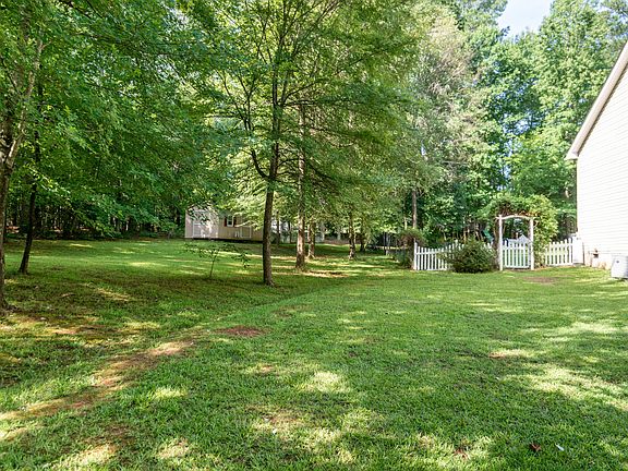 Cute 3 bedroom, 2 bath home on 1.03 acres in Gated Community! Wood floors in foyer, family, hall areas, tile floors in baths, kitchen, dining room and laundry. Covered front porch, back deck, stamped concrete patio, hot tub, all appliances stay. Custom bookshelves, umbrella, shed, swing set and firepit will stay, Gas log fireplace, crown molding, black stainless appliances, under cabinet lighting, 9' ceilings except vaulted ceiling in family room, ceiling fans, dual vanities in master bath, sink in laundry room, generator plug in garage, pull down stairs, built in storage shelving above garage opener, large shed, fenced yard and 1yr home warranty being provided. Refrigerator, washer, dryer, playset, shed included in home sale.