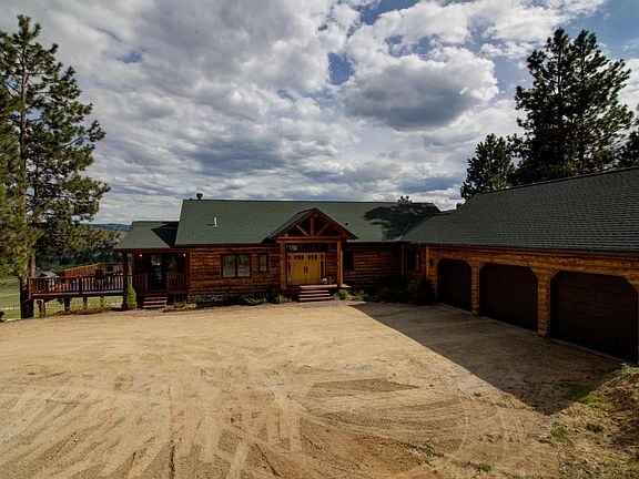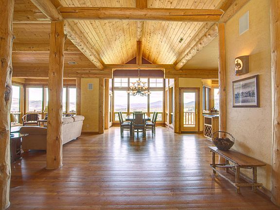 Private Montana retreat nestled on 5 acres with sweeping valley views reaching to Tin Cup Mountain. This custom log home features 3+ bedrooms and 5 bathrooms, including a spacious main floor master and two lower level en suites. The large great room has gorgeous hardwood floors, floor to ceiling stone fireplace, exposed log beams and floor to ceiling windows to capture the stunning views. The gourmet kitchen has ample storage, stainless appliances and opens to the expansive wrap around deck. The daylight lower level is perfect for entertaining with a full wet bar in the huge family room. Additional features include central air, radiant heated floors, underground sprinklers and an oversize/heated garage. Situated on a private 5 acre parcel on a none through road, the property is home to an array of wildlife including a resident elk herd, bear, moose and deer and is surrounded by an apple orchard and 100 acre gentleman's ranch.