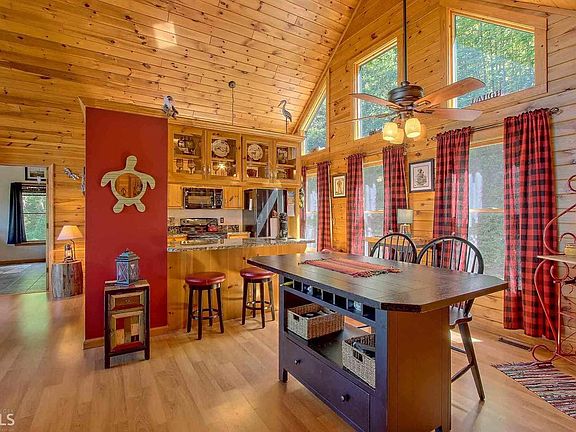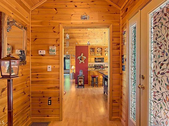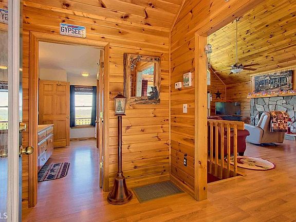 FANTASTIC LONG RANGE VIEWS From this Rustic Beauty. Views from all the Bedrooms and Wall of glass in the Vaulted Great Room. Rock-faced wood burning fplc w/ Log mantel. T&G on the ceiling. Rustic and Beautiful! Open Kitchen w/ glass door cabinets. GORGEOUS Granite in Kitch. Split BR plan w/ Master AND Guest quarters on Main. HYPO-ALLERGENIC Living w/ Imported ITALIAN tiled floors in the Bedrooms. NO CARPET ANYWHERE!!! LVT Floors!!! Dbl Decks!!! Lower Daylight level has BIG REC Room, BR,BA,Storage w/ Utility Door for Motorcycles,toys, tools. 2nd Laundry. Main level has 1417 sq ft and basement has 1417 sq ft. Walk out terrace level w/ fire pit. Multi level parking perfect for guests. Minutes from Blairsville, Lake Nottely, shopping, dining, hiking + much more.