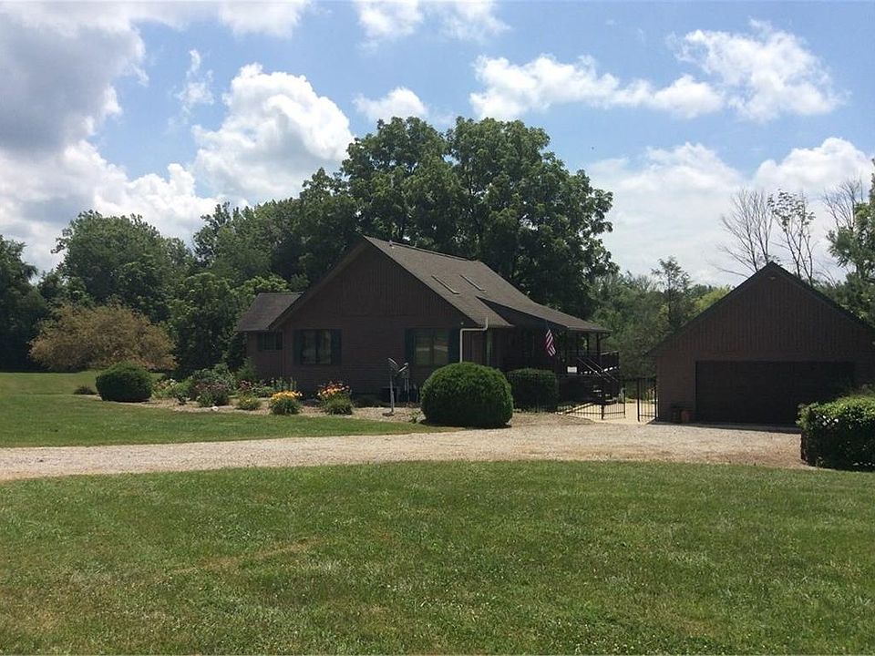Your search for the perfect country retreat ends here, as this one has it all. Rustic style home with very open concept living. Extra large great room with cathedral ceiling, fireplace and double doors out onto the large wraparound deck overlooking one of two large ponds. Open kitchen with breakfast bar, appliances included. Walkout lower level with new flooring offers large family room, bedroom, full bath and laundry area. Detached garage with workshop area, as well as 30x40 pole barn with electric. Landscaped grounds with 2 large ponds, front pond also has dock and sitting area. Very private, 16+ acres on paved road, easy access to US 231.