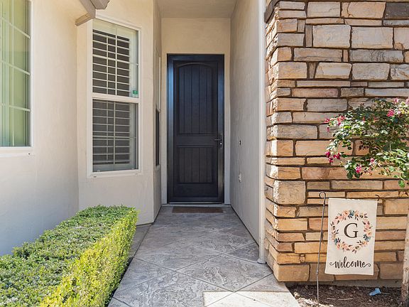 Introducing a true gem in the heart of Clovis, this former Lennar Model Home is a testament to elegance and comfort. Boasting 3 bedrooms and 2 bathrooms, this meticulously maintained property has only had one owner, ensuring pristine condition. Luxurious touches abound, with plantation shutters gracing the majority of the home and high ceilings adding to the grandeur. Step inside to discover open living spaces that seamlessly displays refined functionality. The kitchen is an entertaining chef's dream, featuring granite counters, tile backsplash, and a 6-burner range complemented by a beautiful range hood and adjacent prep sink. A wine fridge and built-in wine storage cater to the connoisseur, while an island and breakfast bar invite casual dining. Entertain guests in the spacious dining area and unwind in the inviting living room, complete with a cozy gas fireplace. Retreat to the primary bedroom, where a sitting area awaits alongside a walk-in closet and private bathroom with a step-in shower, soaking tub, and his and her sinks. The backyard beckons with a small covered patio, a fire pit for cool evenings, and stamped concrete adding to the allure. There's a newer HVAC unit and reverse osmosis water system for added comfort & appeal, in addition to the OWNED solar, which makes high utility bills a thing of the past. Situated in the prestigious Cathedral-Chateau Series Community, this home offers unparalleled convenience, with schools, parks, and Clovis walking trails all within easy reach. Plus, it falls within the coveted Woods Elementary School, Alta Vista Intermediate School, & Buchanan High School boundaries, making it an ideal choice for families seeking the ultimate in comfort and convenience.
