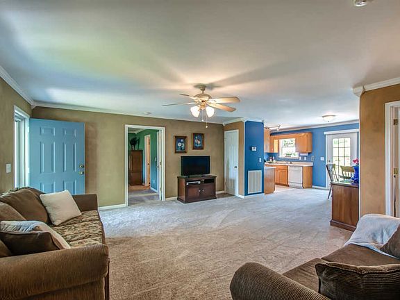 Relax on the patio listening to the sound of the stream that is part of the Koi pond. It is beautiful to look at and requires very little maintenance. The house is on a level acre of property that backs up to a private, mature tree line! Plus, this home is on a cul-de-sac - so very little traffic. The house itself is immaculate with an HVAC system, hot water heater, and roof all less than five years old. The carpet was just replaced in March! It is definitely move-in ready!!