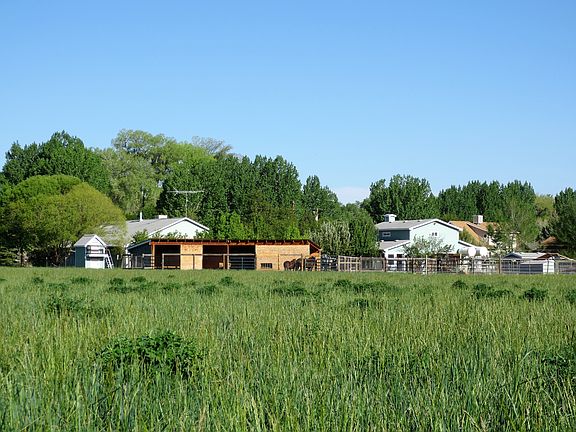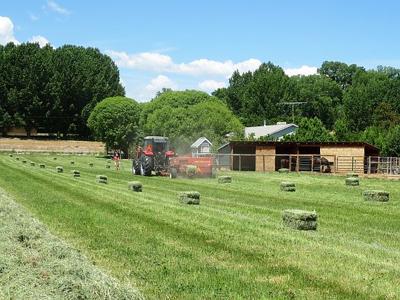 SWEET OLATHE HOBBY FARM OR SMALL HORSE PROPERTY on 4.68 irrigated acres. Although this property is For Sale By Owner, we would be happy to show it to Buyers who are more comfortable working with a Realtor. We will pay a 2 1/2 % commission to a licensed Colorado realtor who is representing the Buyer. Please call 970-497-4807 or 970-209-0453 for more details or to schedule a showing. You can e-mail us at djandch@gmail.com. * 2146 sf single story home built in 1996 has 4 bedrooms, 2 baths, office, sun room and a laundry/mud room. * 1012 sf of attached and finished garage/shop space with shelving, overhead doors and 220 volt outlets. * Kitchen has lots of well-designed custom oak cabinets. The extra-large island has storage cabinets beneath and an eating bar. * In-Floor radiant heat is fueled by propane from a 1000 gal. underground tank. Natural gas is now available along 5600 Rd. * Livingroom has a beautiful and efficient Quadra-Fire wood stove. * Vaulted open-concept main living area. * Several high-quality outbuildings along with corrals and pens are ready for your animals. * 1 1/2 story Barn with 6 rooms. 1040 sf plus 440 sf of floor space in upper story. * 758 sf Horse Barn with 2 open-sided shelters and a hay storage area. * 2 horse corrals plus an approx. 10,000 sf dirt area that could be made into an arena. * 150 sf "pig pen" on concrete slab with partial roof and strong fencing. Would also work well as a dog kennel or other smaller animal enclosure. * 96 sf well-insulated chicken house on a concrete slab with electricity, a south window, feed storage cabinet, 7 nest boxes and roost. * Two-story storage shed on concrete slab near house. * There is ample room for parking RVs, extra vehicles, boats etc. in large side yard. * Productive 3 1/2 acre hay field or pasture is irrigated with 600 ft of 8" gated pipe. The cost for the UVWUA irrigation water is $189.30/ year for 2019. * Entire acreage is fenced with woven wire and gated across driveway. Pasture areas also have electric rope fencing to keep animals from stepping on gated pipe and out of waste ditches. * The many mature fruit trees on the property include: 8 sweet cherry, 1 pie cherry, 4 apple, 3 pear, 3 peach and 2 apricot. Also 3 huge rhubarb plants and 3 grape vines.