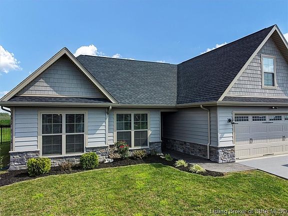 Welcome home to this LIKE NEW ASB built popular "Belle" plan. Upon walking in, you'll notice the lovely LVP flooring that is super low maintenance! The OPEN, split bedroom floor plan is what the sellers love and the amazing farm/field views from the BIG windows. The tall, smooth ceilings and shiplap detail are a treat! How about that island, GRANITE counter tops and spacious eat-in area? The primary has a walk in closet, stunning stand alone tiled shower and dual sinks. The separate laundry ROOM is useful. The bedroom/bonus area up top is a perfect flex room for whatever you need, crafts, bedroom, storage, etc. Out back, you will find a fenced in, peaceful yard with a concrete slab for a great grilling spot! Sq ft & rm sz approx.